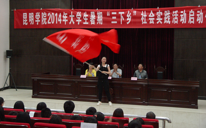 启动仪式上,经济学院团总支书记鲍鲲,社会管理学院杨仕燕分别代表参加社会实践服务团的师生发言。随后,由学校党委副书记孙勇为志愿服务队代表授旗,学校团委组织部部长沈嘉带领本次活动的全体志愿者宣誓。