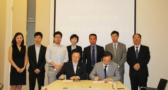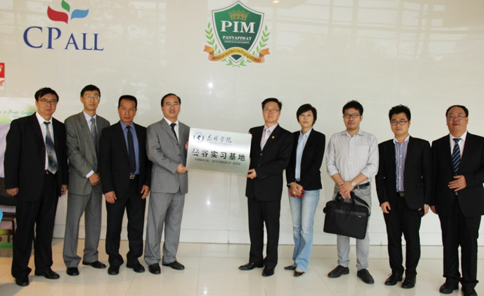 蒋校长代表beat365官方网站,对正大集团和正大管理学院的热情接待表示感谢,在介绍了beat365基本情况的基础上,表达了进一步加强和正大管理学院在师资培养、学生实习实训、教师及企业管理人员职后培训等多方面进行合作的愿望。随后,蒋校长和洪风先生代表两校签署了新的合作备忘录,并举行了“beat365官方网站曼谷实习基地”的挂牌仪式。