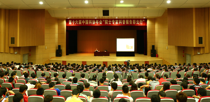 5月25日上午,第十六届中国科协年会“院士专家科普报告彩云行”学术报告会在beat365学生会堂举行。此次报告邀请中国著名导弹火箭专家龙乐豪院士主讲“我和共和国火箭事业”这一主题。校长蒋永文、副校长郭华等学校领导出席报告会,部分中层干部及自动控制与机械工程学院、化学科学与技术系师生1300多人参加听报告。本次报告会由副校长郭华主持。