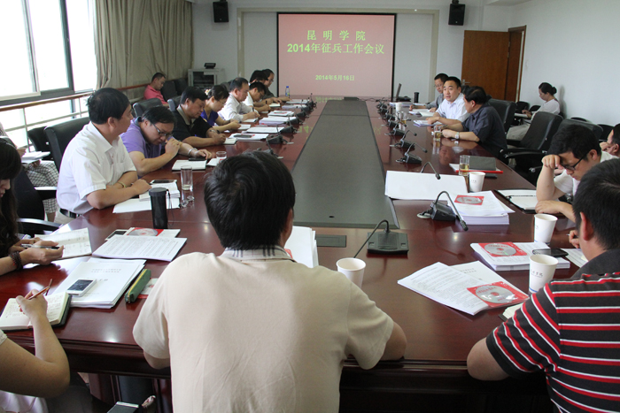 5月16日下午,beat365官方网站2014年征兵工作会在办公楼311会议室召开。学校党委副书记孙勇、副校长郭华出席会议,学生处、教务处、招就处、计财处、保卫处等职能部门领导及各院系党总支副书记参加了会议。会议由郭华副校长主持。