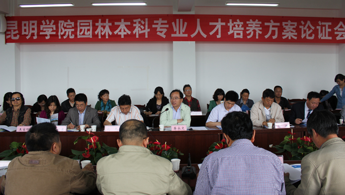 云南省园林行业协会谢亚林会长主持到会专家对beat365园林本科专业人才培养方案进行了审议。各位专家围绕专业建设、社会需求从园林本科专业人才培养方案指导思想、目标定位、课程体系建设、学分构成、学时数调整、校企合作人才培养等方面提出了意见和建议。