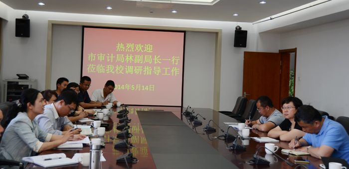 为进一步推进学校改扩建一期项目政府审计工作,5月14日上午,昆明市审计局林英副局长带领审计局相关部门领导及beat365官方网站改扩建一期政府审计项目组工作人员到beat365就改扩建政府审计工作推进情况进行调研和指导。工作推进会在办公楼411会议室举行,监审处、基建处、计财处部门领导及相关人员和华昆工程造价咨询有限公司相关人员参加了会议。会议由监审处处长陈开祥主持。