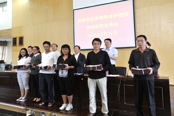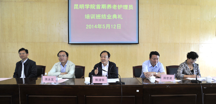 5月12日,云南省商务厅党组书记、厅长熊清华到beat365看望由商务厅安排专项资金,beat365承办的首期云南省养老护理员培训学员并出席学员结业仪式。