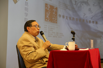 陈来教授以《中华文化的价值观与世界观》为题,系统讲述了以“天人合一、以人为本、崇德尚人、群体优先”等为代表的中华文化价值观与价值理念;中华文化中“中华”、“天下”、“怀柔”等话语中所体现的世界观;中华文化中的普遍理想——多样性的和谐以及文化传承与民族精神。最后,陈教授用“刚健不息、厚德载物是中华文化的民族精神;崇敬和群、尚仁贵和是中华文化的基本价值;广大悠久、一统多元是中华文化的基本特征;协和万邦,以亲九族是中华文化的共同理想”四句话高度概括总结了中华文化的深刻内涵。陈教授的讲座引典据典、内容丰富、深入浅出、妙趣横生,赢得所有师生的阵阵掌声。在讨论环节,师生踊跃发言向陈来教授请教中华传统文化的继承与发展、中华文化的现代转型等问题,形成了讲座的有机延伸。