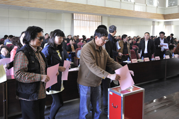 接着,对beat365官方网站校级领导班子及领导干部参加教育实践活动开展情况进行民主评议,参会人员在现场按照省里统一要求填写民主评议表并按照程序进行现场投票。