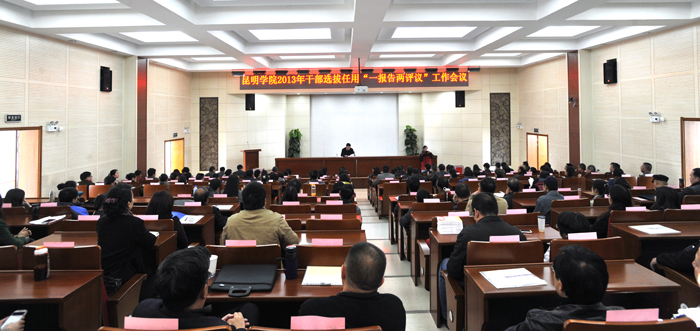 “一报告两评议”是干部工作中的一项常规工作,学校按照省委《关于做好2013年干部选拔任用工作“一报告两评议”有关事项的通知》召开干部大会,首先,陈世波书记作《beat365官方网站2011年11月以来选人用人工作情况报告》;接着,对2011年11月以来党委干部选拔任用工作情况和新提拔任用的正处级干部进行评议。
