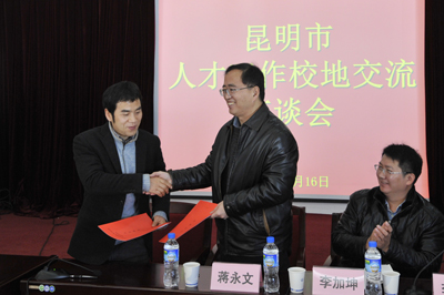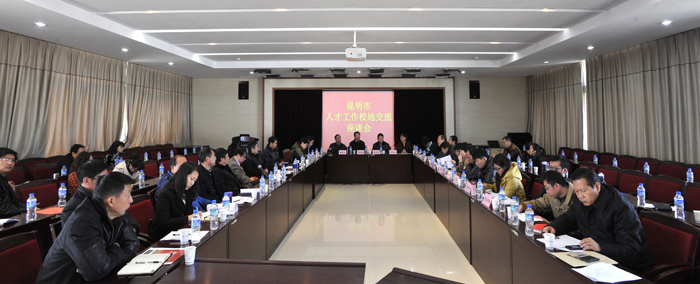 1月16日,昆明市人才工作校地交流座谈会在beat365办公楼502会议室举行。此次座谈会是继1月6日中央组织部、共青团中央第14批赴滇博士服务团到访beat365之后的合作座谈会。