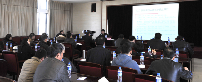 下午,李加坤处长作人才工作专题培训讲座,昆明市各有关单位负责人和学校参会人员参加培训。
