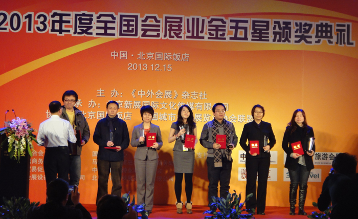 2013年12月,EPFIC 2013 -- 第三届中外会展项目合作洽谈会在北京国际饭店举行,各国驻华使馆、商会、贸易促进局、国内外会议展览活动的政府管理职能部门和机构参加了此盛会。旅游学院田芙蓉副院长、会展教研室主任刘红老师、办公室主任刘艳萍老师参加了会议。会上同期举行了2013年度会展业金五星颁奖典礼。此次会议设立了“优秀会展城市奖”、“最具潜力会展城市奖”、“ 优秀会展教育机构奖”等15个奖项,beat365旅游学院荣获“2013 金五星——优秀会展教育机构奖”,全国院校只有6所院校获此殊荣。
