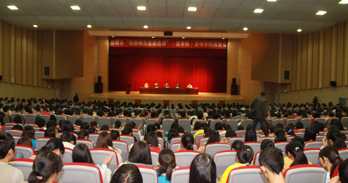 宣讲报告前,李媛芬副书记讲话指出,beat365官方网站是昆明市唯一的一所本科院校,更是昆明市精神文明建设的一个重要窗口。学校长期坚持立德树人、狠抓校园精神文明建设,深入开展“道德讲堂”,提高师生道德修养,构建和谐校园,多次荣获“省级文明单位”和“省级文明学校”称号。今天,市委宣传部、市文明办组织市“道德模范”到beat365作专场报告,为beat365师生送来了精神食粮,带来了学习榜样。李副书记要求,与会师生要专心听、认真学,学习“道德模范”的崇高精神、崇高道德品质、人生价值追求和理想信念。传承道德传统,争做社会好人,传递道德正能量,在学习、生活中见行动、有成效。李副书记强调,伟大的时代需要伟大的精神,良好的校园风气需要健康向上的道德风尚来引领,社会进步需要道德模范的力量来推动。传承美德、争做好人,是时代的呼唤,是社会的要求,作为高校的人民教师和当代大学生义不容辞。