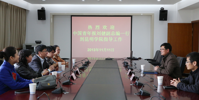 11月11日,中国青年报副总编刘健率中国青年报驻云南记者站站长张文凌一行5人到beat365调研指导工作。按照学校领导安排,党委宣传部、团委热情接待,并进行座谈交流。