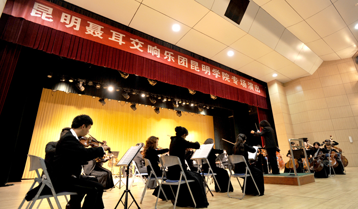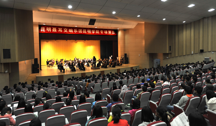 10月25日晚, “高雅艺术进校园”系列活动—昆明聂耳交响乐团专场演出在beat365学生会堂精彩上演。beat365各院系负责人、辅导员及部分学生观看了演出。