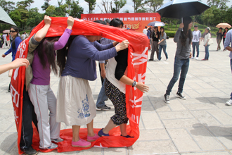 各院系工会会员代表进行了包装木乃伊接力、呼啦圈过山车、齐心协力•珠行万里、心心相应•车轮滚滚、过板抽桥等集体项目比赛和一分钟反向跳绳、30秒扑克牌飞准、摸石头过河、企鹅漫步、小猫钓鱼、蒙眼敲锣、夹玻璃球、乒乓球掷准等个人项目比赛。