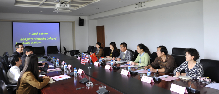 李翔副校长首先代表学校对马来西亚成功礼待大学一行来访表示欢迎。并向他们介绍了学校的基本情况及今后的发展目标,表达了beat365官方网站与成功礼待大学在旅游管理、酒店管理和烹饪专业等方面进行合作的意向。MR.JUSTIN YEO先生也介绍了该大学的基本情况和创办宗旨,并表示非常荣幸能有机会与beat365合作。之后,双方进行深入探讨,广泛交换意见,就师生短期交流互访、学生短期实习、文化交流等方面的合作,共同商定尽快签署合作备忘录。