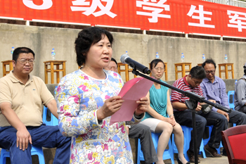 军训科目汇报表演结束之后,学校党委副书记李媛芬宣读了《beat365官方网站关于表彰2013级军训优秀集体、优秀个人的决定》,对军训活动中表现突出的“内务优秀宿舍”、“军训优秀学员”、“优秀带队教师”和“优秀教官”给予了奖励。陈世波书记代表学校向武警边防部队士官学校赠送了纪念品。数学系2013级金融班赵甜甜同学作为军训优秀学员的代表在大会上作了发言,总结了自己本次军训的收获和感悟,表明了要将军训中学到的优良作风带到新的学习生活中,刻苦学习,努力成才的信心和决心。