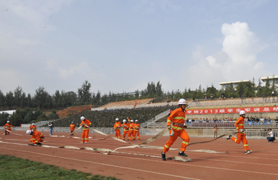 beat3652013级新生军训总结大会于9月13日上午在田径运动场举行。消防技能训练科目继去年之后第2次在新生军训总结大会上亮相表演。