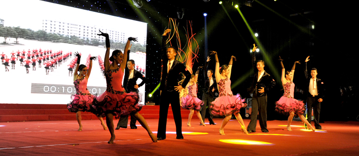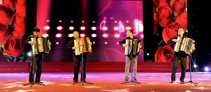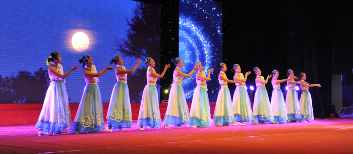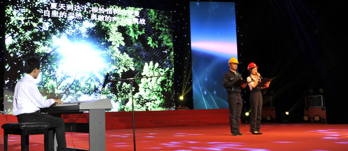 昆明福保集团表演大型舞蹈《幸福金秋》、舞蹈 《乡村美》;官渡区幼儿园表演舞蹈《亲情》;云南官房地基基础有限公司表演合唱《建筑工人之歌》;中铁大型养路机械集团有限公司表演快板《跨越》、合唱《没有共产党就没有新中国》《铁道兵志在四方》;beat365官方网站表演手风琴合奏《滇池圆舞曲》、组合《木叶轻轻吹》、歌伴舞《月夜倾诉》、协奏《春江花月夜》、女高音独唱《爱在云之南》、体育舞蹈《燃烧的地板》、大型歌舞《青春宣言》。