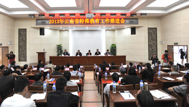 9月4--5日,云南省2013年特殊教育工作推进会在beat365办公楼D区报告厅隆重召开。省教育厅副厅长王建颖、省残联副巡视员吴正杰、beat365官方网站党委副书记孙勇、beat365官方网站副校长熊晶出席会议。全省各地州(市)分管基础教育的教育局副局长、基础教育科科长,全省特殊学校(含附设特教班)校长,beat365官方网站教师教育学院、临沧师专的教师等130余名人员参加会议。会议由云南省教育厅基础教育处詹显良副处长主持。