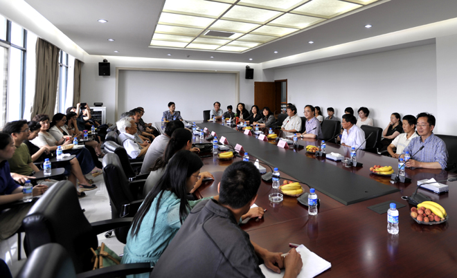 参观结束后,蒋校长、熊副校长及相关部门领导、师生分别在办公楼3楼会议室与教授们进行座谈,听取来宾对beat365建设发展的意见和建议。人文学院院长詹七一、昆明滇池(湖泊)污染防治合作研究中心办公室主任钱春萍、昆明科学发展研究院副主任黄继元,首先向各位教授介绍了beat365相关工作情况。在听取介绍后,5位教授结合自己多年来的办学、治学经验,对beat365相关学科专业建设和科学研究提出了宝贵的意见和建议。