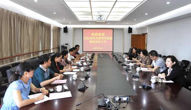 5月16日上午,昆明市政协副主席、民进昆明市委主委汪叶菊,民进昆明市委副调研员王强、秘书长余平、组织处处长李进、宣传处副处长曾毅一行莅临beat365,就beat365民进总支换届事宜进行工作调研。beat365党委副书记李媛芬、统战部部长沈中灿、民进beat365官方网站总支主委王昆建、副主委博斌、张明霞参加调研会。