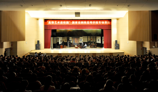 为丰富校园文化生活,提高学生艺术修养和文化素质,为高校学生的健康成长营造良好的文化环境,推动学校高雅艺术的普及工作,5月29、30日晚,“高雅艺术进校园——中国国家话剧院beat365官方网站专场演出”在学生会堂举行。学校领导、中层干部及各院系师生代表共1300余人观看了演出。