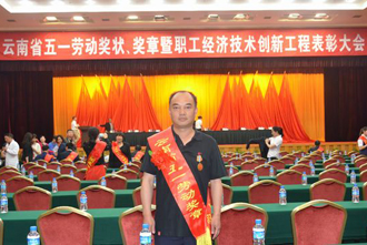 在2013年“五一”前夕,省总工会决定,评选表彰一批为我省科学发展和谐发展跨越发展建设做出突出贡献的先进集体和先进个人,分别授予省五一劳动奖状、省五一劳动奖章和省工人先锋号。根据云南省推荐评选原则和昆明市总工会从近期州市级劳动模范中产生省五一劳动奖章候选人的要求,学校工会组织召开工会委员、分工会主席、教代会常设主席团成员和部分教职工代表会议,研究推选出beat365生命科学与技术系陈子牛老师(昆明市第二十二届劳动模范)为2013年度云南省五一劳动奖章候选人,报学校党委同意,上报省市总工会审核评选。4月28日,云南省总工会召开“云南省五一劳动奖状、奖章暨职工经济技术创新工程表彰大会”,全省有120人荣获云南省五一劳动奖章,其中,昆明市12人获此殊荣。