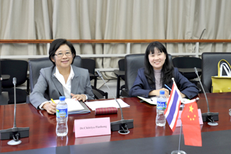 5月8日下午,泰国兰实大学外事副校长兼中泰合作交流处处长Dr. Chitriya Pinthong 及中泰合作交流处副处长Dr. Kanjanita Suchaoin 一行到beat365访问。李翔副校长热情接待并与之会谈,国际交流合作处副处长陈静及相关工作人员参加会谈。双方就学生互换、短期实习、硕博联合培养等具体项目进行了讨论并达成共识。
