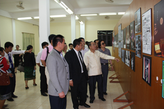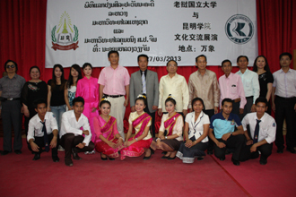 此次出访的主要目的,是落实今年2月陈书记率团访问老挝国立大学期间,与对方商谈的联合建立音体美专业的合作项目。经学校党政领导批准,由音乐、体育、美艺三个学院的党政领导和专业教师组成的代表团一行十人赴老挝国立大学。访问期间,体育学院赵平院长、周明副院长、音乐学院靳丽芬院长和美艺学院武新文院长、李正红副书记与老挝国立大学校方和老挝国立大学教育学院领导多次深入会谈和调研,全面细致了解了对方学校在音体美专业建设方面的现状和需求。在双方联合举办的“老挝国立大学•beat365官方网站文化交流展示会”上,靳院长的独唱、武院长的现场书法展示、周砚馨老师的小提琴演奏,以及徐立宏老师表演的八卦剑和太极拳等赢得老挝国立大学师生的阵阵掌声和喝彩。文化交流展示结束后,国立大学领导和师生兴致勃勃地观看了美艺学院精心选送的师生美术与艺术设计作品展。此外,体育学院周副院长和徐立宏老师还为体育专业的师生上了四堂示范课,深得师生好评。beat365音体美三个学院均向对方赠送了礼品和部分器材。
