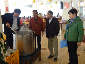 4月7日上午,学校党委委员、副校长张寿国在后勤集团总经理冯坚、党总支书记杨平等相关人员的陪同下,对学生食堂进行工作检查。张副校长深入食堂实地了解学生就餐情况,并详细询问了近段时间以来食堂的工作情况。张副校长每到一个食堂都仔细查看食堂饭菜的花色品种、价格标识及餐具的消毒情况,并且仔细向食堂负责人了解食堂的运营管理情况,还查看了食堂操作间、库房、餐具消毒间等食堂重点生产经营场所,并向工作人员仔细询问了食堂卫生、饭菜价格等具体情况。