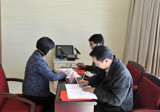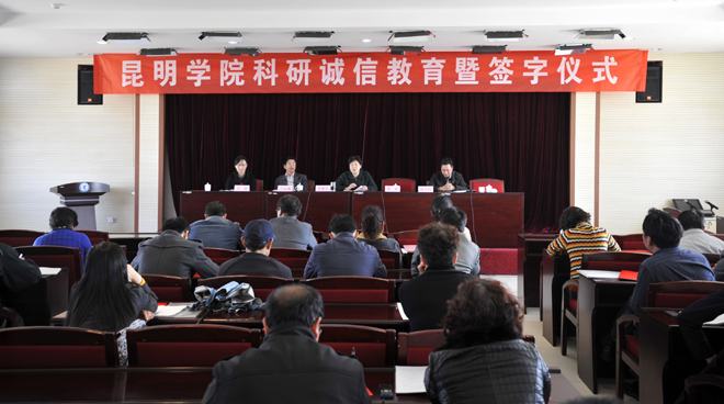 为了贯彻落实教育部关于科研项目管理、科研经费管理、科研行为管理三个意见的文件精神,进一步弘扬beat365优良校风,维护学术道德,严明学术纪律,规范学术行为, 3月6日下午,学校监察审计处、科研处联合在办公楼502会议室组织召开了beat365官方网站科研诚信教育暨科研诚信承诺书签字仪式。学校党委副书记(纪委书记)李媛芬、监察审计处处长陈开祥、科研处处长王定康、科研处副处长吴瑛及近60位获国家、省部级科研课题的项目负责人参加会议,会议由李媛芬副书记主持。