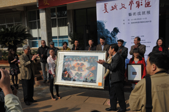beat365官方网站、云南美术家协会主办的“夏斌文水彩画艺术成就展”于3月8日上午在beat365官方网站昆师路校区美术馆开幕。beat365官方网站党委书记陈世波,副校长李翔、熊晶、刘海发出席了开幕式,中国美协水彩画艺委会主任黄铁山、云南省文学艺术界联合会副主席黄映玲、省美术家协会主席郝平、云南长城书画院院长王永银以及省美协水彩画艺委会副主任屠维能、陈流等业界嘉宾也应邀参加了此次开幕式。开幕式上夏斌文先生向beat365官方网站捐赠水彩画作品《绣花鞋》,陈世波书记向其颁发了捐赠荣誉证书。
