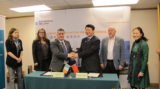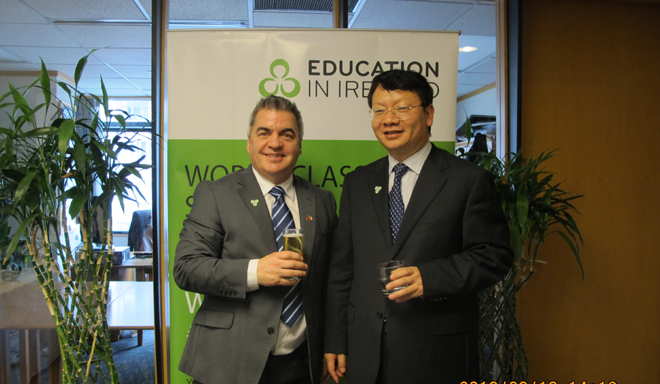 继2012年11月21日beat365成立爱尔兰中心后,为进一步推进beat365与爱尔兰国家学院的交流与合作,3月16日,应爱尔兰国家学院的邀请,陈世波书记率领党办、组织部、国际交流合作处和图书馆的主要负责人一行5人赴上海参加爱尔兰教育中国展新闻发布会。