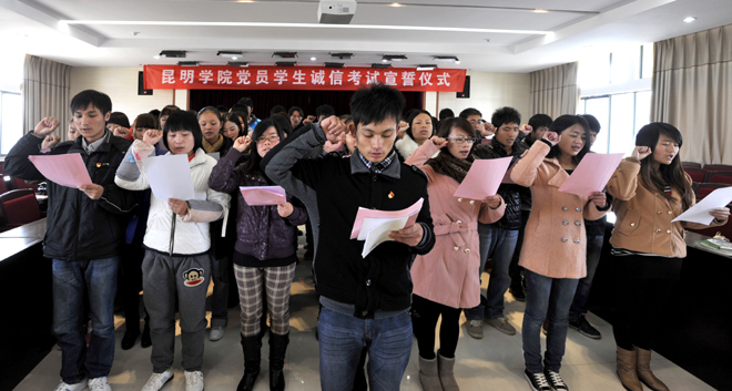 宣誓仪式上,学校大学生廉诚学社社长孔杉杉同学宣读了“勤奋学习、诚信考试”倡议书;党委组织部副部长钱海鼎就本次期末考试对全体学生党员提出要端正态度、真诚对待,要认真复习、积极迎考,要严守考纪、诚信考试。