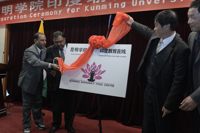 随后,Ganguli(甘古里)先生和赵平院长共同为“beat365官方网站印度瑜伽中心”揭牌;加尔各答法学院院长Dr. S S Chaterji和孙晓坤副主席陪同揭牌。