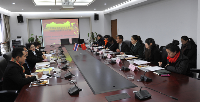 李翔副校长代表学校对泰国吞府皇家大学Lakana Banpakan校长一行莅临beat365表示欢迎,并向他们介绍了学校的基本情况及今后的发展目标,表达了beat365官方网站与泰国吞府皇家大学在学分互认、科研和专业建设、师生互派等方面进行合作的意向,尤其对长期学历生、短期语言生的学费、食宿及教学计划等相关细节进行了磋商。两校计划将在明年暑期开展该项目。