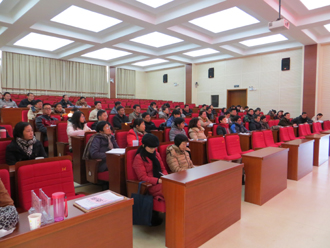 全体参会人员首先在办公楼三楼 D区报告厅听取校领导做国家级项目申报动员。陈书记在2013年国家级项目申报动员讲话中指出:国家基金项目是代表国家最高级别和水平的科研项目,申请到项目的数量及其产出的成果对提升学校的影响力、对学校更名大学成功、申请硕士学位授权点等有着重要的意义。他要求各院(系)、部要组织教师认真分析和学习申报指南和相关通知要求,了解国家政策,将自身科研特色和优势与国家需求相结合,做到有目的申报,提高申报成功率;各学院(系)、部要通过举办申请项目报告会、组织小型学术研讨、成立专家小组或组织学术委员会对项目《申请书》进行讨论和修改,帮助申请人特别是青年教师提高申请项目的质量;要求副高以上职称的教师、博士、在读博士必须积极申报2013年国家基金项目,保证申报数量和质量能有大幅提升。