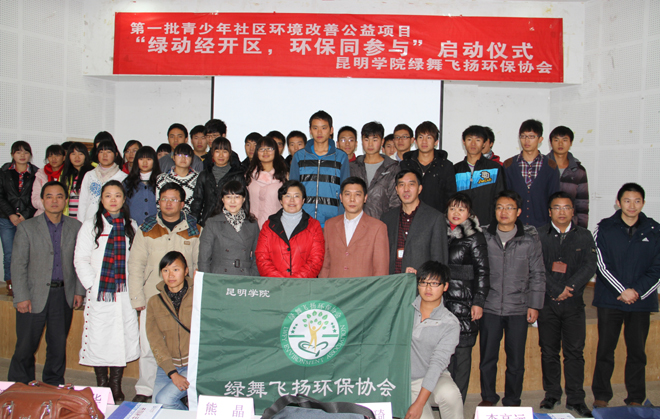 1月11日上午,beat365“第一批全国青少年社区环境改善公益项目”正式启动。学校熊晶副校长,省、市环境宣传教育中心,经开区环保局,校团委、经济学院相关负责人及“绿舞飞扬”环保协会指导单位学校昆明滇池(湖泊)污染防治合作研究中心领导和指导教师应邀出席,“绿舞飞扬”环保协会社团成员及青年志愿者参加启动仪式。启动仪式由学校“绿舞飞扬”环保协会副会长王光宇同学主持。