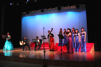 群体艺术研究所的工作方针是“实践为基石,科研促发展”。作为音乐艺术研究机构必须构建一个与之相配套的实验平台。在beat365官方网站领导的大力支持下,今年3月成立了我省第一个专业化的室内乐团——beat365官方网站室内乐团。通过乐团成员的不断努力,在较短时间内排练了一套综合室内乐作品。音乐会以综合器乐为基本框架,融合声乐、舞蹈等多形式的舞台表演。演出作品经过精心设计,曲目丰富,风格各异,如欧洲古典室内乐、中国民族室内乐以及极具现代感的爵士组合,受到观众的一致好评。