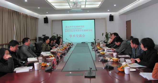 昆明科学发展研究院办公室副主任黄继元教授从我院的功能定位、主要工作任务、工作方式以及昆明科学发展研究院成立以来为beat365官方网站和昆明地方经济社会发展服务等方面向对方作了介绍。唐山科学发展研究院执行副院长刘学谦研究员对唐山科发院的基本情况、主要职责、已做工作和取得成果等几方面作了介绍。随后,昆明科学发展研究院和滇池(湖泊)污染合作研究中心的老师,就各自研究的领域同唐山科发院调研组的老师进行了交流。