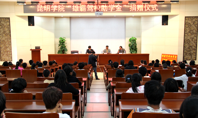 杨金林校长在讲话中向获助的同学表示祝贺。他表示“雄霸驾校助学金”是雄霸驾校履行社会责任、扶贫济困、支持文化教育事业、致力社会公益事业的具体体现。他希望受助的各位同学在校期间潜心搞好学业,以顽强毅力,学习掌握科学文化知识和专业知识、专业技能,为昆明市的社会进步、经济发展作出贡献。