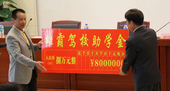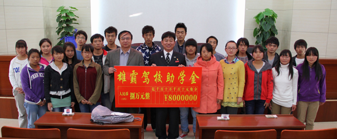 “雄霸驾校助学金”是在学校张寿国副校长协调下,由“雄霸驾校”出资专门对beat365家庭经济困难学生进行资助的社会助学金,是beat365积极争取社会资助,帮助家庭经济困难学生顺利完成学业的又一渠道。今年雄霸驾校资助了beat36520名学生,每名受助学生享受4000元的资助。