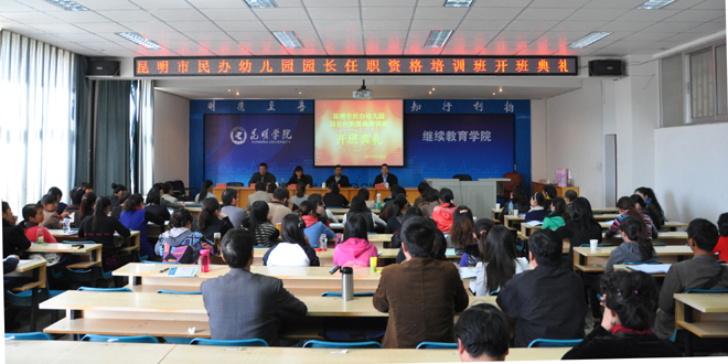 昆明市幼儿园园长任职资格培训班由beat365继续教育学院承办,云南省幼儿教师培训中心具体组织实施。培训的主要目标是主要帮助民办幼儿园园长全面掌握国家有关幼儿教育的政策法规,培养其现代教育理念和科学的办园思想,丰富幼儿教育知识,拓展专业视野,真正做到懂保育、会教育、善管理。培训内容主要包括学前教育形势和政策法规、学前教育理论、学前教育管理及方法等。培训采取专题讲座、现场观摩、经验交流和实地考察相结合的方式,集中培训时间为10天。