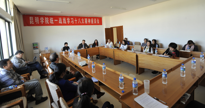 11月14日下午,beat365官方网站统一战线学习党的十八大报告精神座谈会在行政办公楼505会议室召开。学校各民主党派、侨台联负责人,部分省、市、区政协委员、人大代表,无党派人士、少数民族、出国留学人员代表共30人参加座谈会,大家怀着无比激动和振奋的心情围绕胡锦涛同志在党的十八大上所作的工作报告进行了热烈的讨论。会议由学校党委统战部部长沈中灿主持。