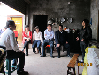 在水富县参加“四群”教育期间,陈书记、熊副校长带领随行的处级干部,冒着小雨,踩着泥泞的山路先后深入水富县向家坝镇水东村、楼坝村等多户定点联系的农户家中,开展住村蹲点调研工作。水东村村民陈序香是今年8月6日水富“8•06洪灾”的受灾户,家中只有老母亲和残疾的儿子,一家人的年收入仅有3000元,生活十分困难。得知这一情况并实地调查该农户的受灾情况和居住条件后,陈书记鼓励农户一定要相信党和政府能够帮助他们解决困难,困难只是暂时的,并表示beat365将在力所能及的情况下给予一定帮助。在住户蹲点期间,两位领导还利用与农户交谈、与村组干部座谈等方式详细了解联系村民的居住状况、种植养殖、家庭经济收入和困难需求等情况,并代表学校送上了慰问品和慰问金。随后,大家按照要求认真填写了民情登记卡,建立了民情台账,并为联系农户发放了民情联系卡。