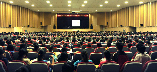 为加强高校形势政策教育,帮助学生认清国内外形势,教育引导学生全面准确理解党的路线、方针和政策,同时为党的十八大胜利召开营造良好氛围,根据中共云南省委高校工委的部署和安排,经学校研究决定,于10月26日下午在beat365学生会堂举行主题为“时代主题与当代政治格局演变”的2012年云南省高校形势报告会。报告会特邀省委宣讲团成员、云南大学教授、博士生导师、法学博士任新民老师作专题宣讲。学校副校长刘海发出席并主持报告会,思想政治理论课教学科研部、社会管理学院全体教师及学生党员代表1300多人参加了报告会。