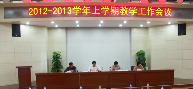 10月26日下午,学校在办公楼D区三楼报告厅召开2012—2013学年上学期教学工作会议。学校各教学院(系、部)院长(主任)、各院(系、部)分管教学副院长(或副主任)、各院(系、部)教学秘书及教务处处长、副处长、各科科长、副科长等参加会议。副校长罗明东出席并主持会议。