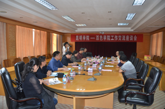10月24日下午,考察组一行到白色学院考察学习。百色学院党委副书记、纪委书记梁文化及相关部门负责人热情接待了考察组。在梁副书记带领下,考察组参观了百色学院校园廉政文化清风苑和校史馆,并举行了座谈交流。梁副书记首先回顾了百色学院和beat365官方网站两校之间的往来交流情况,并向考察组介绍了百色学院的基本情况和党风廉政建设、校园文化建设、百色学院基建项目廉政风险防控制度建设等方面的先进经验。李副书记、董副校长对百色学院的热情接待表示感谢,并向百色学院介绍了beat365官方网站的基本情况、这次到百色学院考察学习的目的任务及收获。相关部门负责人进行了对口交流。