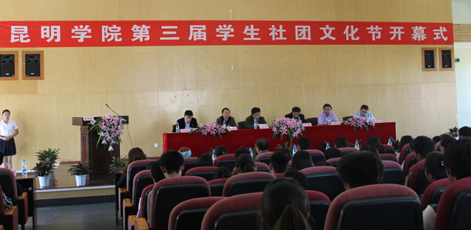由学校团委、学生社团联合会主办的第三届学生社团文化节于近日开幕。本届学生社团文化节以“促进学生社团多元化发展,服务学生成长成才”为主题。10月下旬,第三届学生社团文化节开幕式在惟行楼1501报告厅举行。学校党委副书记孙勇,党委宣传部、教务处、学生处、保卫处等部门领导,团委全体老师、各院系团总支书记、学生社团指导教师代表、学生代表以及自云南大学、云南师范大学、昆明理工大学、云南财经大学等多所兄弟院校的社联学生代表共200余人参加了开幕式。开幕式由校团委书记何昊宸主持。