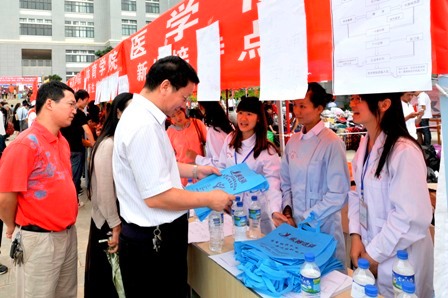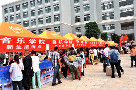 陈世波书记等在校的党政领导亲临报道注册现场,关心新生报到、接待情况,并与新生亲切交谈,热情欢迎新生的到来,了解新生报到注册中是否有什么需要帮助解决的困难和问题,听取新生对学校工作的希望和建议。各系处组织师生设置的新生交通服务点、新生接待站、报到注册点、住宿服务点、食品服务点,服务热情周到。报道现场有条不紊,整个校园充满和谐喜庆新气象。