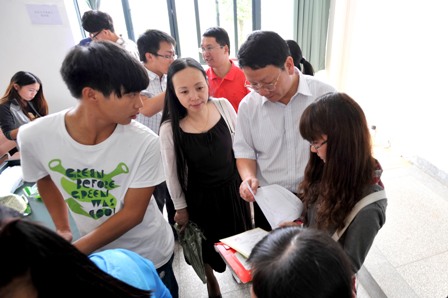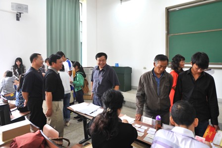 8月27日清早,beat365官方网站博雅楼前彩旗飘扬,热烈欢迎2012级新同学。新生们怀着十分喜悦的心情陆续来到美丽的洋浦新校园。为确保新生报到工作有序进行,向新生提供热情周到的服务,学校党委书记陈世波、党委副书记孙勇等校领导亲临现场检查指导工作。